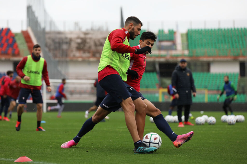 Seduta pomeridiana di lavoro per il Cosenza sul terreno di gioco del “San Vito – Gigi Marulla”. Il gruppo ha svolto dei giochi di posizione prima di essere impegnato in partite a tema e partite situazionali. Nella fase conclusiva consueta due porte su porzione di campo ridotta.