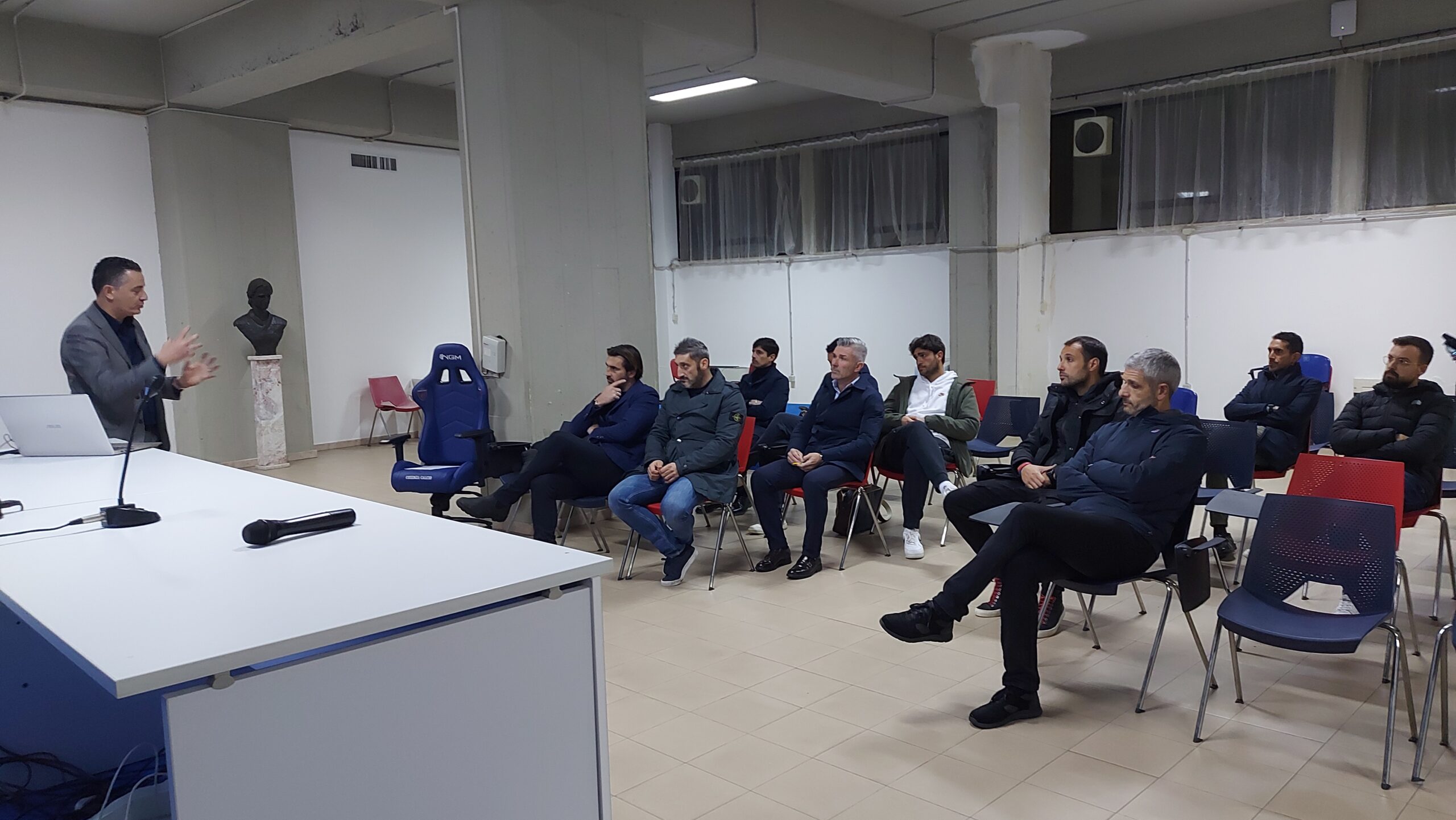 Momento di formazione per i dirigenti e lo staff tecnico del Cosenza Calcio. Nella sala stampa “Donato Bergamini ” dello Stadio San Vito Gigi Marulla. Introdotto dal’addetto agli arbitri della prima squadra Mario Palmieri, è stato relatore l’ex arbitro CAN A/B Riccardo Pinzani Responsabile della Commissione di studio per la formazione degli addetti agli arbitri.