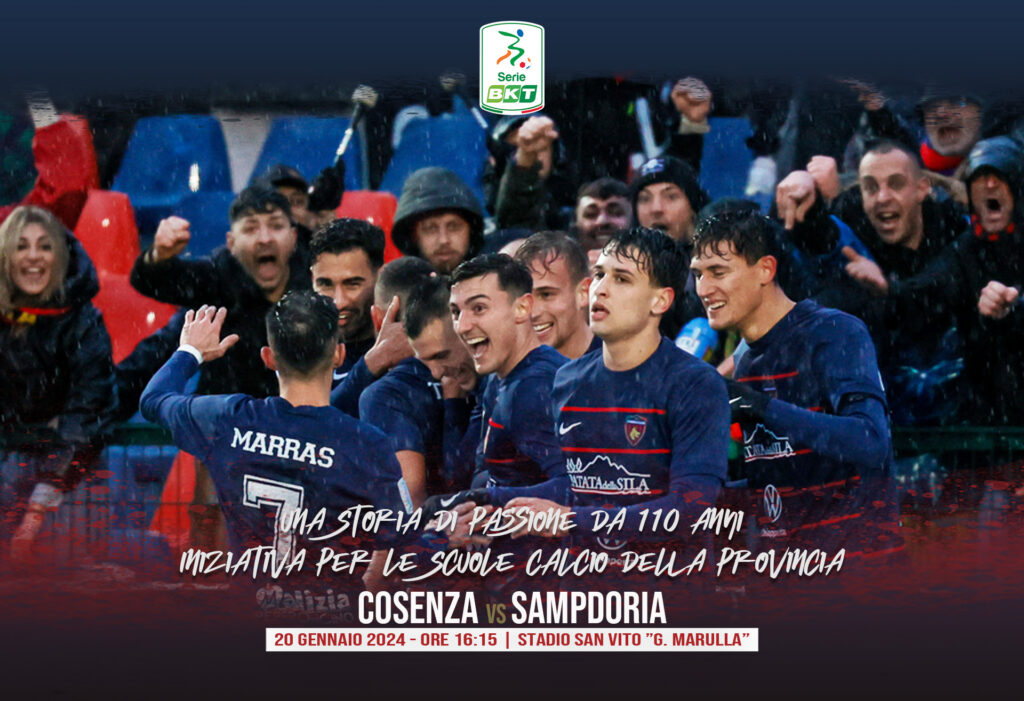 Il “Marulla” apre le porte ai ragazzi delle scuole calcio della Provincia di Cosenza. In occasione della gara Cosenza – Sampdoria di venerdì 23 febbraio 2024 alle ore 20:30. La Società Cosenza Calcio invita le scuole calcio a presenziare con i propri giovani tesserati sugli spalti dello stadio San Vito Gigi Marulla.