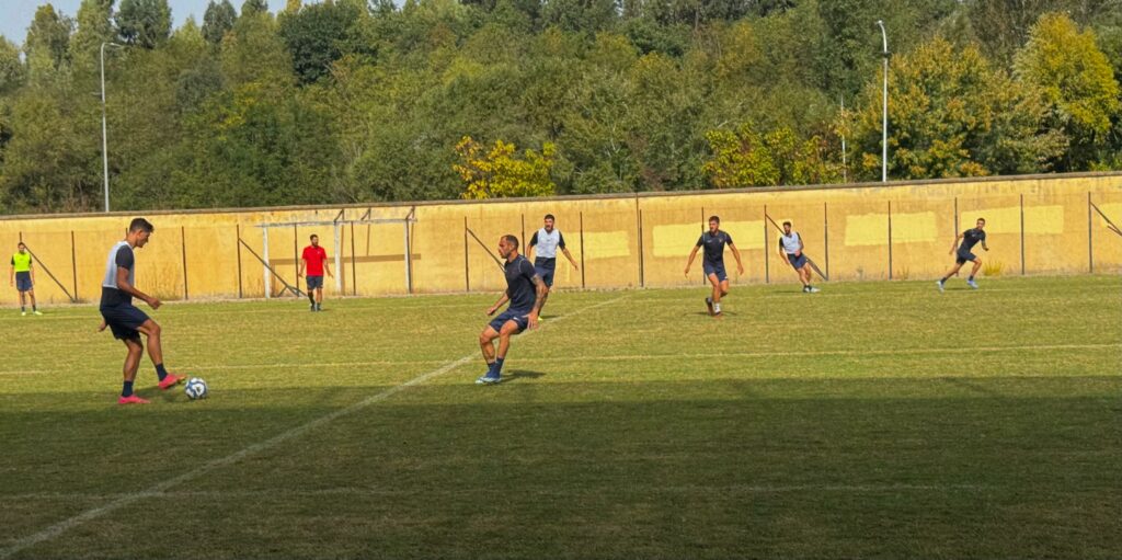 Seduta mattutina per i rossoblù che, divisi in due gruppi, si sono alternati tra esercizi di forza ed esercitazioni a tema in campo.